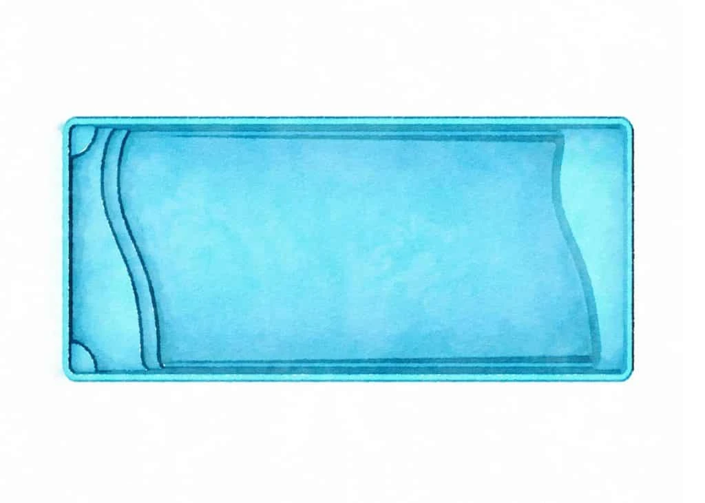 The Barcelona by Latham Pools is a beautifully designed 16′ × 38′ fiberglass pool that combines the refined lines of a rectangle with subtle curves for a welcoming touch. It features smoothly curved stairs and integrated swim-up bench seating, offering both aesthetic appeal and functional comfort.